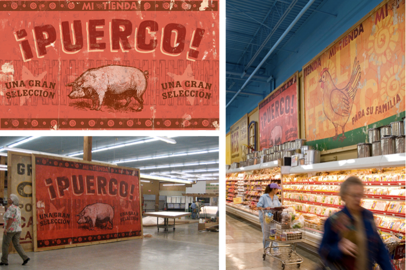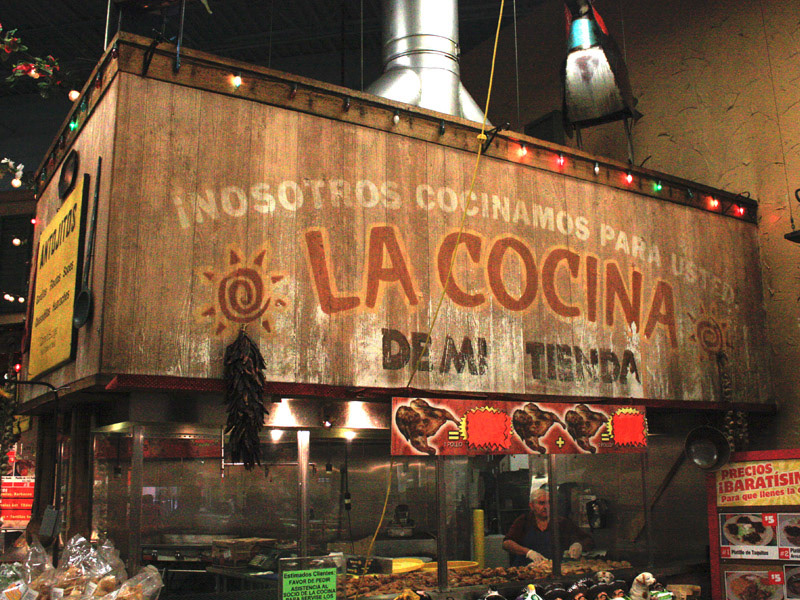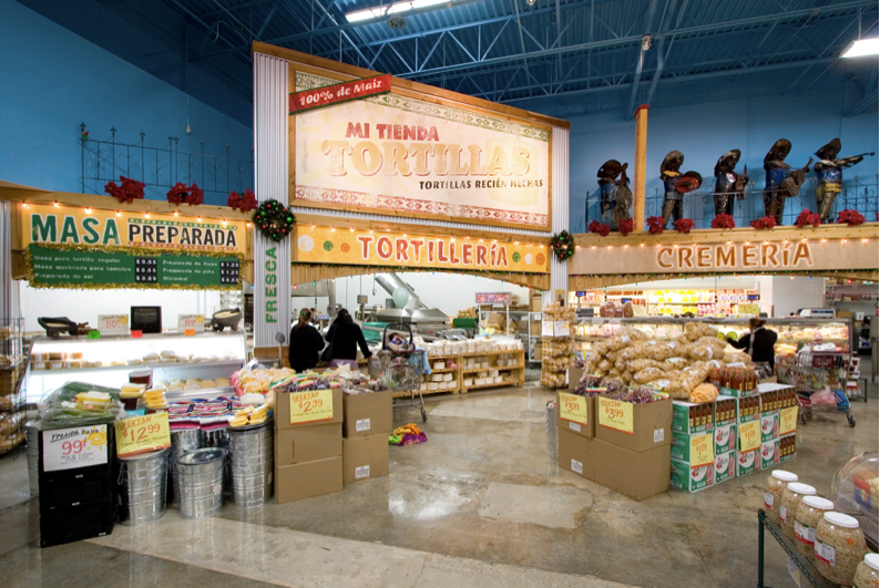 The store concept was based on the rich visual variety found in small Mexican streetscapes, where each storefront is owned by a different proprietor.